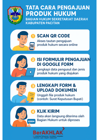 Bagian Hukum Sekretariat Daerah Kabupaten Pacitan kini menghadirkan layanan digital untuk mempermudah proses pengajuan produk hukum daerah. Melalui Google Form perangkat daerah dapat mengajukan produk hukum dengan lebih cepat, praktis, dan terintegrasi.